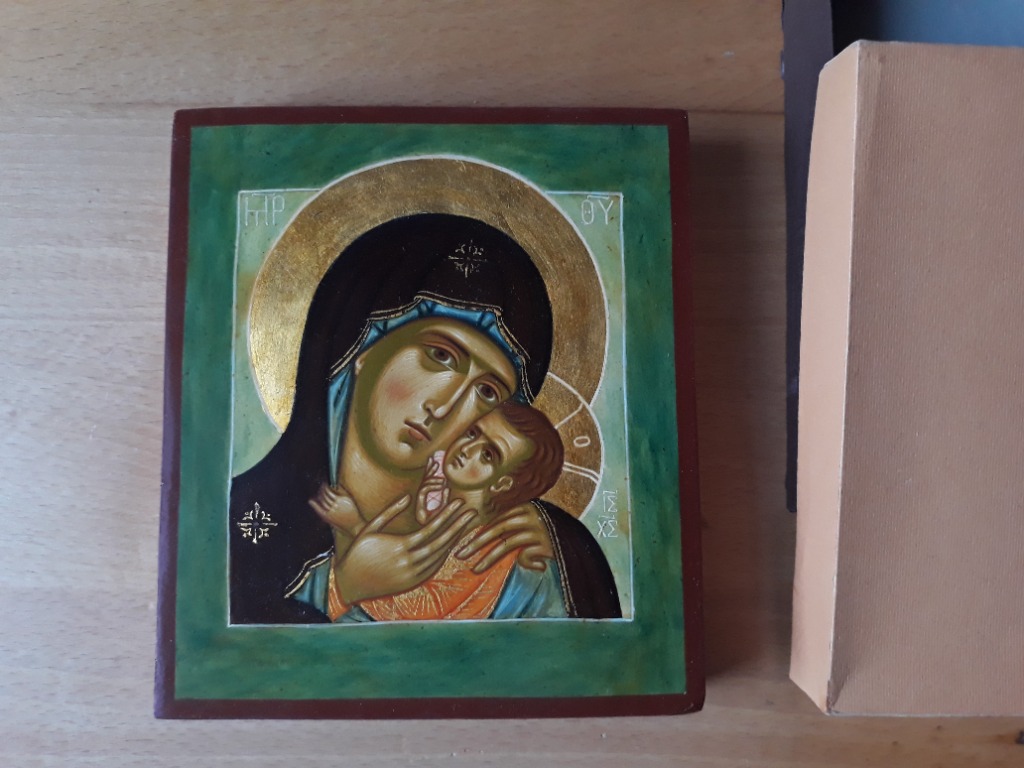 (zawieszony z tyłu) bardzo piękny i oryginalny pomysł na prezent ! Izrada ikona po narudžbini kao i gotove ikone svih dimenzija. Ikona to jeden z przejawów sztuki sakralnej, czyli związanej z tematyką religijną. Ikona je rađena na lipovoj dasci sa kušacima. Bogorodica odigitrija, ikona oslikana u ikonopisnoj radionici manastira žičе. Po posebnom zahtevu na ikonama izvedbe b/2 i v/1 moguće je na izraditi i dodatni ukras: Ikony wykonane w technice współczesnej (malowane od podstaw ręcznie wysokiej jakości farbami akrylowymi na zagruntowanej desce bukowej, olchowej, lipowej lub brzozowej):. Ikony wykonane w technice współczesnej (malowane od podstaw ręcznie wysokiej jakości farbami akrylowymi na zagruntowanej desce bukowej, olchowej, lipowej lub brzozowej):